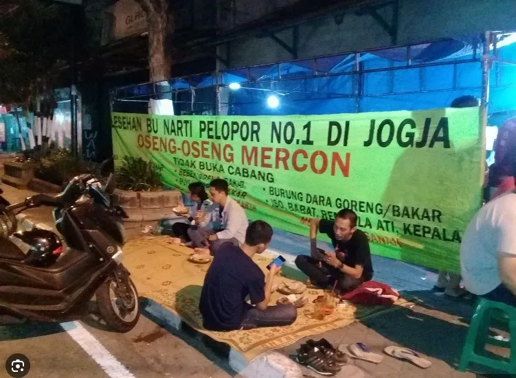 - Warung Legendaris: Oseng Mercon Bu Narti adalah salah satu warung makan yang legendaris di Jogja. Jl. KH. Ahmad Dahlan Jl. Purwodiningratan No.110, Ngampilan, Kota Yogyakarta, Daerah Istimewa Yogyakarta 55262 , warung ini buka setiap hari mulai pukul 17.00 hingga 23.00 WIB, siap menyajikan nikmatnya hidangan pedas.